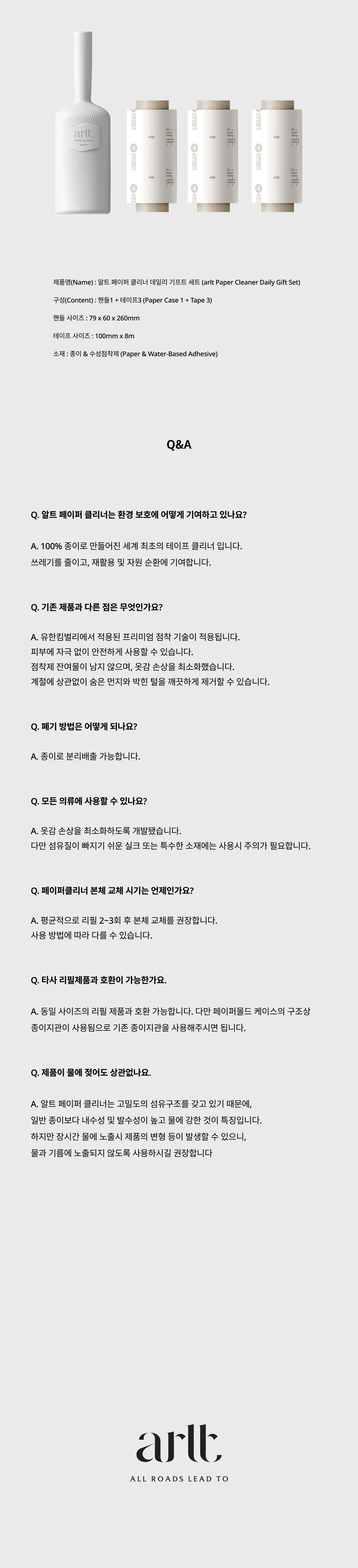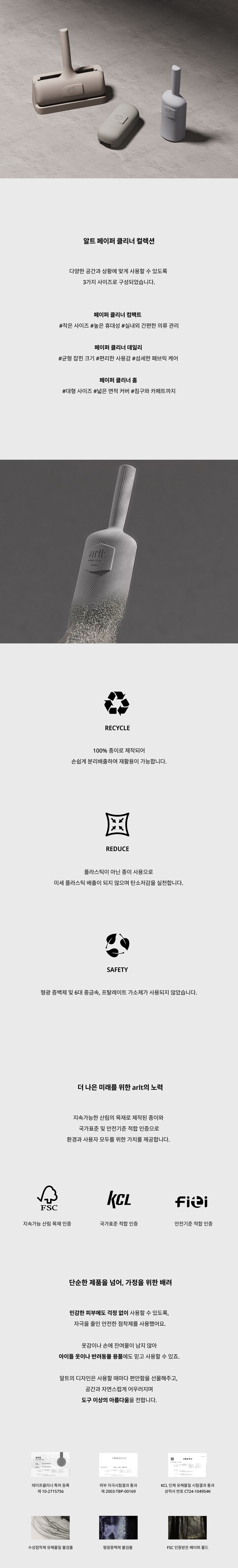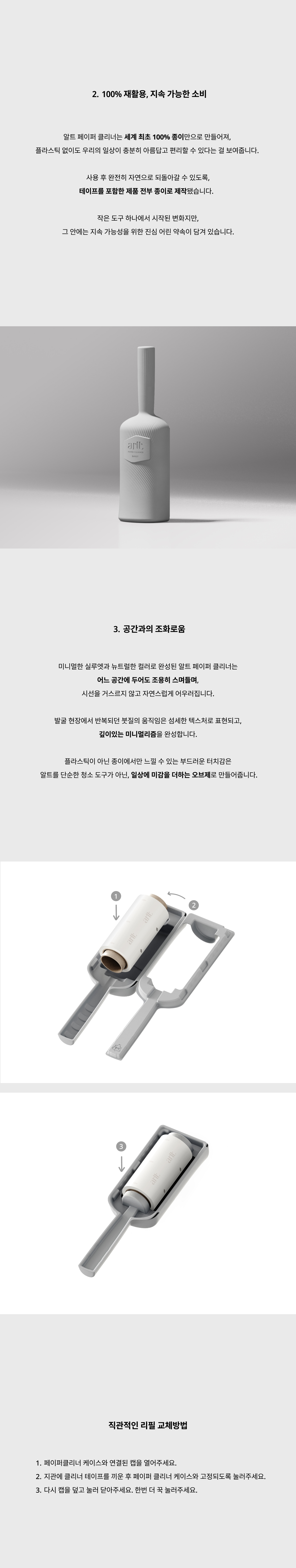 arlt 페이퍼 클리너는 올페이퍼 소재로 만들어진, 가장 친환경적인 테이프 클리너입니다. 지속 가능성을 실천하는 하이엔드 오브제로써 오직 종이로 구현됐습니다.